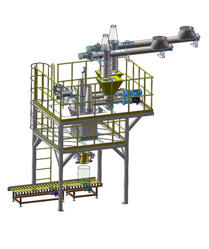 與生產線緊密相連,專業螺桿輸送機送料,傳感器感應重量,抽氣單元自動抽氣,可適用于袋裝、桶裝兩種不同規格的灌裝。