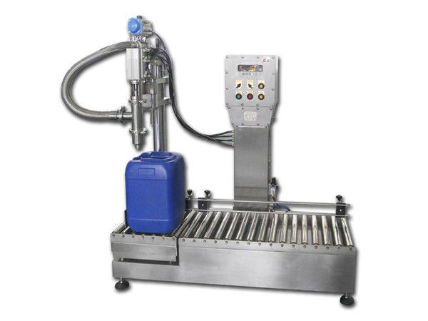 采用液面上/液面下兼用的灌裝方式,可充氮保護(hù),可適用于多種液體物料的灌裝;設(shè)計(jì)可調(diào)節(jié)氣動(dòng)球閥和噴槍,既提高了灌裝速度,同時(shí)又確保了灌裝精度;減少灌注完畢時(shí)殘液的滴漏;集氣罩可避免灌裝過程中揮發(fā)氣體的泄出,可以保護(hù)操作工。操作時(shí),操作者僅需簡(jiǎn)單地將空桶口對(duì)準(zhǔn)噴槍嘴正下方;按下“啟動(dòng)”按鈕,噴槍自動(dòng)下降進(jìn)入桶底,空桶自動(dòng)去皮,充氮,然后正確地雙速灌裝;噴槍隨液面升高而升起,灌裝結(jié)束,噴槍自動(dòng)提升至桶外,一個(gè)循環(huán)即告完成。