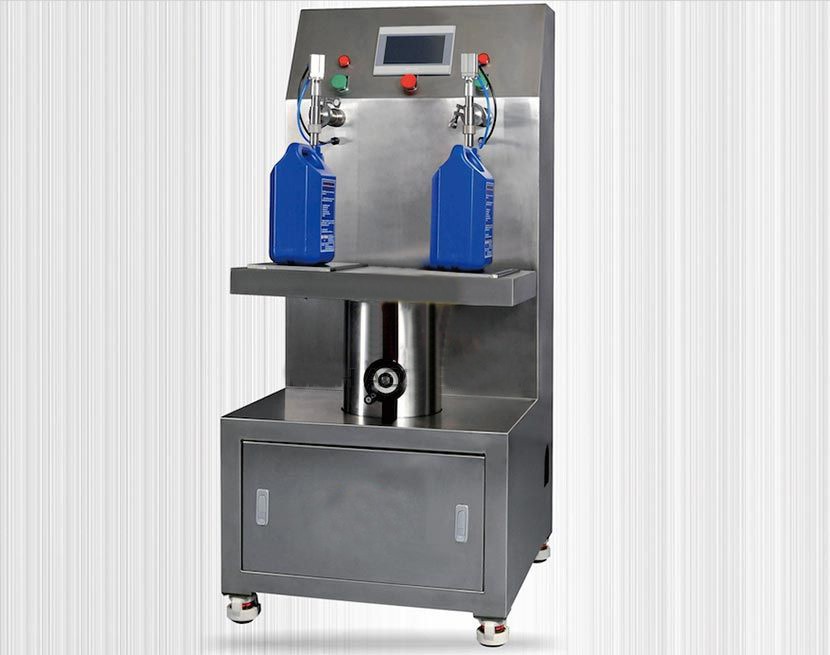 應用案例YCS-GZ型高灌稱重式灌裝機,原理是由稱重傳感器平臺在PLC程序的控制下設定計量.是高精度,高技術產品.是集機、電、儀一體化的新型機種,它改變了傳統流量計式灌裝機定量精度及無法對較粘液體的計量缺陷.是文明生產和國家明令規定淘汰杠桿秤后,融稱重與灌裝一體化的理想設備.灌裝時先去除皮重,操作者只需要將容器放入平臺,桶口對準灌裝咀,此時程序啟動,打開灌裝閥進料, 物料在注入容器時先大量快速灌裝后再慢速小劑量修正計量,當達到設定量是自動停止灌裝,灌裝咀上升,完成灌裝過程。稱重灌裝機適用于各種有粘、無粘、有一定腐蝕性和無腐蝕性、無泡沫的液體稱重定量灌裝。功能特點1.灌裝方式:液面上灌裝(頂部灌裝)。2.控制方式:基于觸摸屏、PLC、稱重模塊與高精度稱重傳感器及變頻泵相結合模式。3.進料方式:變頻泵自動吸料。4.具備數字式顯示灌裝量的功能,可完成多種灌裝量的設置。5.具備自動去皮,按凈重灌裝的功能。6.具備控制系統手動和自動(微動開關控制)功能。7.具備快慢雙速控制功能(變頻控制),防止飛濺,提高灌裝精度。8.具備防止誤操作和斷電保護等緊急處理功能。9.采用純電動控制,無需配置空壓機,不需要氣源?!救舾哒扯任锪?,改用電氣結合灌裝頭更匹配】。10. 基于衛生與美觀要求, 整機優質不銹鋼304材質制造,液體流經管道為不銹鋼304材質。型號灌裝范圍 灌裝速度 灌裝精度 液料進口壓力 功率 電源 外形尺寸[MM]重量YCS/5KG0.5-5kg10-16瓶/分鐘≤0.2%0.3~0.35MPa≤3.5KWAC380V 50HZ650x750x148090 kg上海廣志自動化設備是專業生產5升灌裝機的廠家,歡迎廣大客戶前來咨詢,電話021-60518382 上海廣志自動化設備是專業生產5升灌裝機的廠家,歡迎廣大客戶前來咨詢,電話021-60518382 上海廣志自動化設備是專業生產5升灌裝機的廠家,歡迎廣大客戶前來咨詢,電話021-60518382