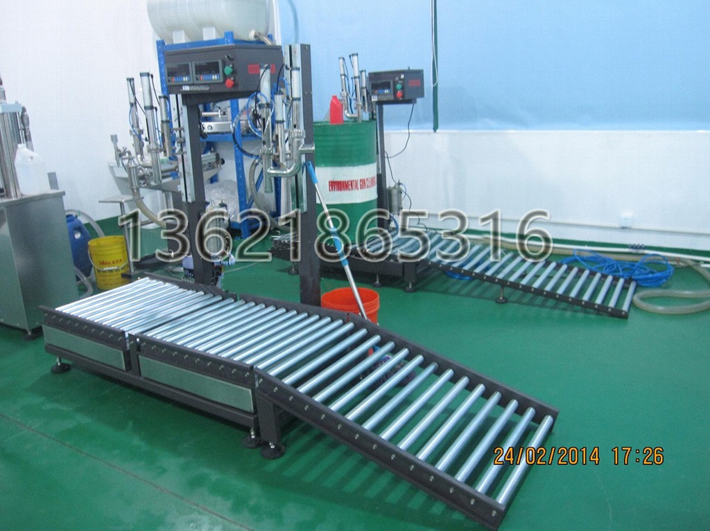 稱重灌裝機 20-300kg 桶裝稱重灌裝專用 【特點】1、灌裝方式:自上而下灌裝。2、控制方式:手動設定灌裝方式,微動開關控制。3、輸送方式:無發動機滾筒輸送。4.自帶數顯灌裝量功能,可完成多種灌裝量環境。5.自動去皮,按凈重灌裝功能。6、自帶抽真空功能,避免滴漏。7.具有手動和自動微動開關控制系統功能。8.雙速控制功能,防止飛濺。9、具有應急處理功能,避免誤操作,斷電