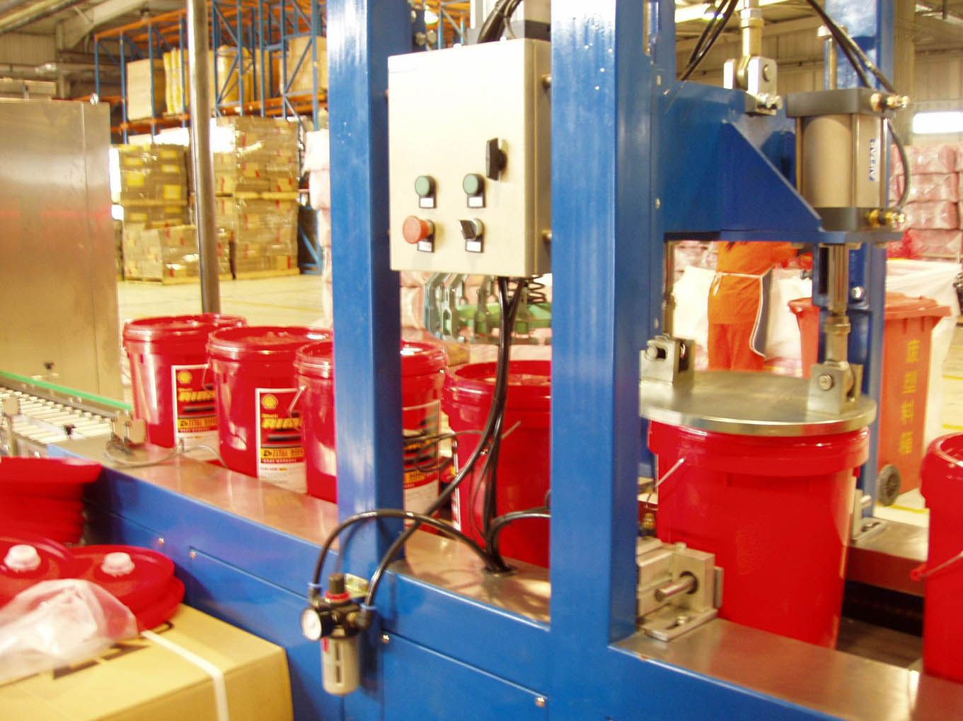 藥、化妝品等行業的鐵罐壓蓋。設備用于供蓋、夾桶、傳送、鎖蓋,機器自動化程度高,穩定性好,調節方便。
