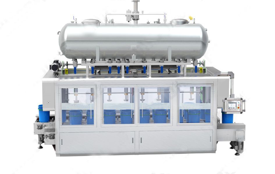 了進出桶時間,相比單排灌裝機擁有更短的工作周期。電控部分采用PLC微電腦+稱重組件控制,只需在觸摸屏中輸入目標灌裝量,即可對整體灌裝計量進