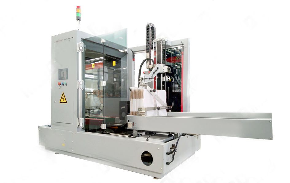 同時減少了人工的上箱頻率和勞動強度。自動完成開箱、自動折合下蓋、自動密封紙箱底部,采用PLC+人機界面控制,操作方面、維