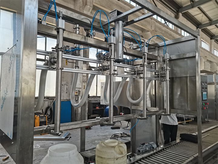 產品概述:用于散裝液體物料的自動定量容器灌裝。廣泛用于食品加工、醫(yī)藥制藥和化工行業(yè)的液體的定量灌裝。產品特點:1、自動伺服尋址,找尋桶口。2、獨特的噴槍設計,易于操作,灌裝快速,準確。3、雙速加料,保證灌裝精度。4、操作安全,各種過程連鎖,保證操作安全。5、速度連續(xù)…