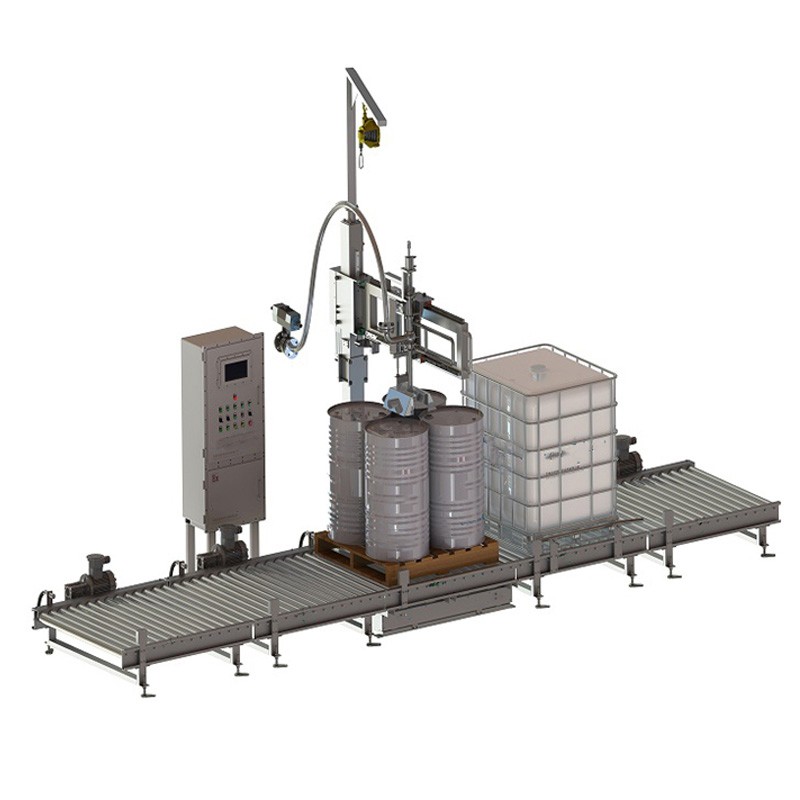 操作流程:人工上桶→人工對(duì)孔→自動(dòng)灌裝→人工放蓋壓蓋→移載滿桶→人工碼垛;