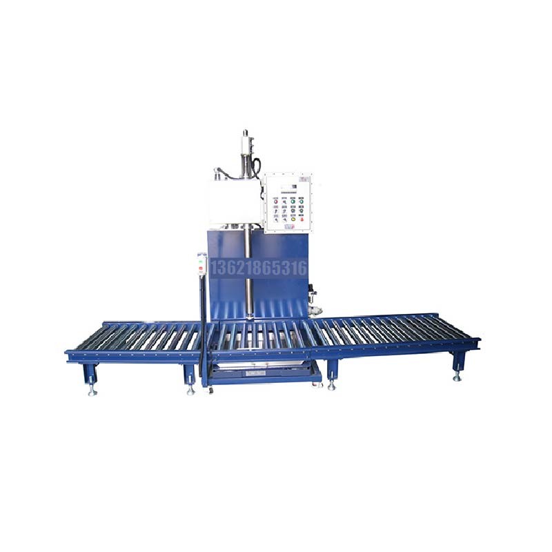 灌裝結束,灌裝秤頭自動提升至桶外,滴漏盤自動接至灌裝頭底部灌裝完成,輸送線啟動自動將成品桶輸送至鎖蓋區(qū),人工鎖蓋完成自動輸送至成品區(qū),叉車叉走成品桶整個灌裝流程結束!