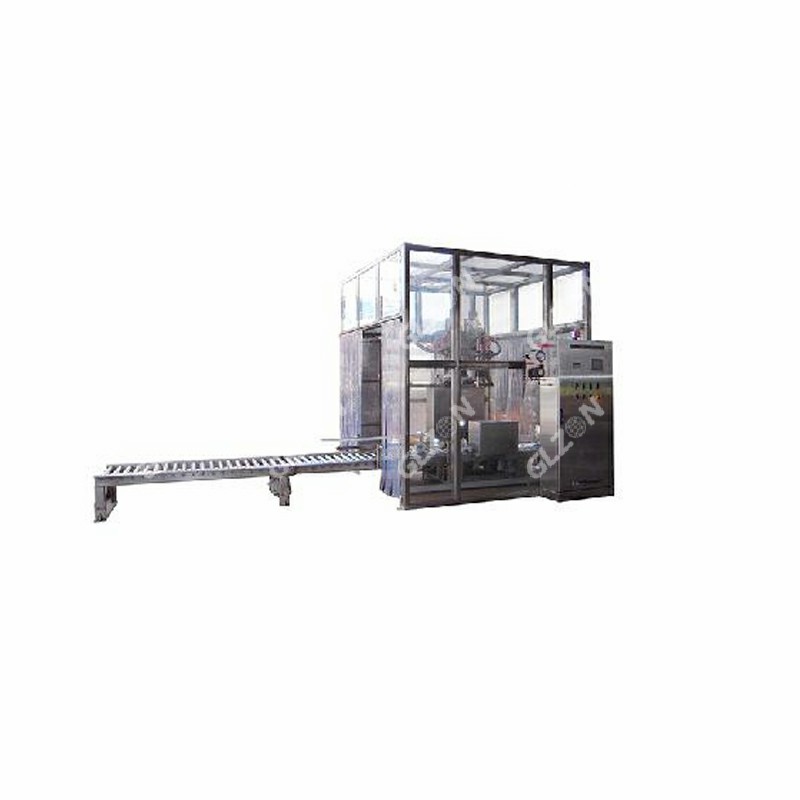 操作流程:人工開蓋將空桶放在輸送線上,輸送線啟動,自動輸送至灌裝工位,自動對口自動灌裝,首先進入快速落料,到達一定重量(設定的小料重量)時轉換為慢速落料,當重量到達目標值時停止落料,計量完成即灌裝完成。當灌裝完成后,自動輸送至成品區人工鎖蓋,叉車移走成品桶,灌裝流程結束!