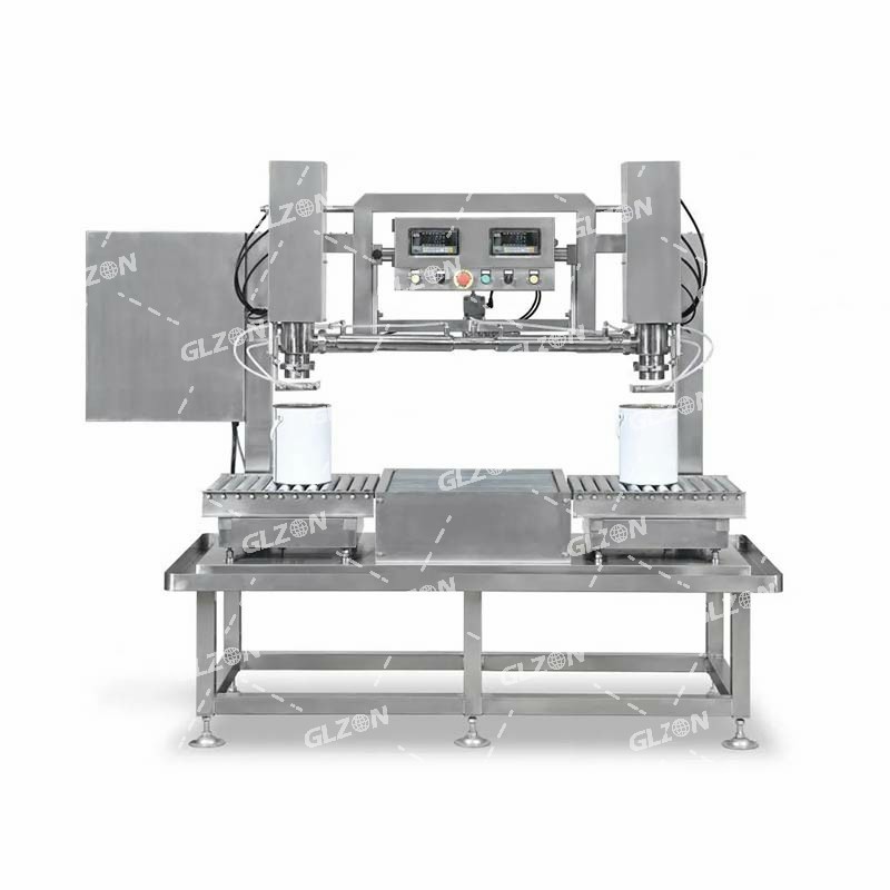 操作流程:人工上空桶--人工對孔--自動定量灌裝--人工鎖蓋即完成;