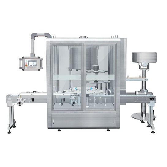 主要技術參數本機集進瓶、理蓋、上蓋、旋蓋、出瓶于yi體。各傳動部件結構xian進,帶有離合報警裝置。整機智能控制,進、出瓶卡瓶時機器報警停機,缺蓋報警停機、有蓋自動復位啟動。在旋蓋過程中旋蓋效果緊密,優良,無松蓋、歪蓋現象,旋蓋效率高。永磁離合器控制扭矩,扭力可調。定制化、個性化,客戶可按需選配自動充氮,不合格品自動剔除功能,可15分鐘內快速換產。 運轉平穩、噪音低、適用范圍大、與前后道灌裝,貼標等設備易于聯線。型號頭數整機尺寸(mm)生產能力(瓶/時)適用瓶 旋蓋合格率取蓋方式主機功率(KW)配備電源配備氣源FX-4T42200×1500×25004500廣泛應用于各種方瓶,圓瓶,異形瓶等同yi批次包材合格,標準,統yi99.9%機械手取蓋3380/50Hz0.55-0.65MPa FX-6T62200×1500×25006000FX-8T82350×1600×25008000上海廣志自動化設備公司是專業生產自動灌裝機的廠家,聯系電話021-60518382 上海廣志自動化設備公司是專業生產自動灌裝機的廠家,聯系電話021-60518382 上海廣志自動化設備公司是專業生產自動灌裝機的廠家,聯系電話021-60518382