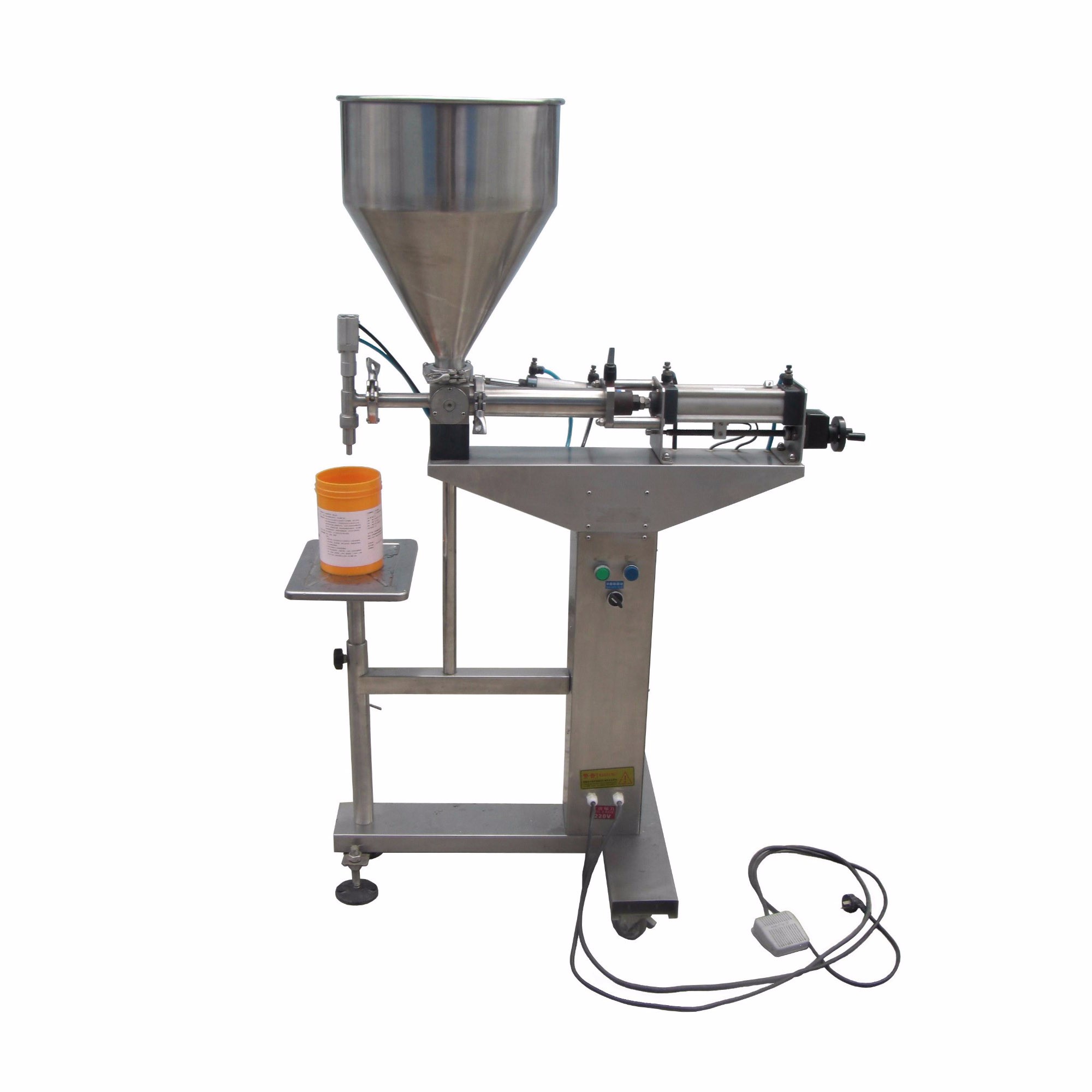Vertical liquid filling machine is semi-automatic piston type filling machine, cylinder, a piston to extract and type material, with a one-way valve to control the material flow, and the magnetic reed switch controlCylinder stroke, can adjust the volume of filling, is an ideal equipment for no viscosity fluid fills.