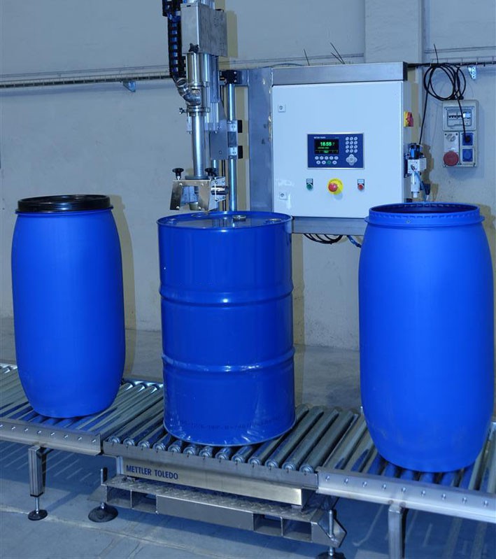 液體灌裝機是以重量方式將大量的散裝液體物料分裝到各種容器、鐵桶或塑料桶中,用於30L~1000L桶自動定量灌裝,廣泛應用于化工、糧食、農藥等與液體狀物料相關的行業,適用在涂料、油漆、油墨、膠粘劑、固化劑、樹脂、染料、清洗劑、機油、甘油、潤滑油、食用油、香精、溶劑、助劑、食品添加劑、農藥及其他危險性化學產品等產品中。