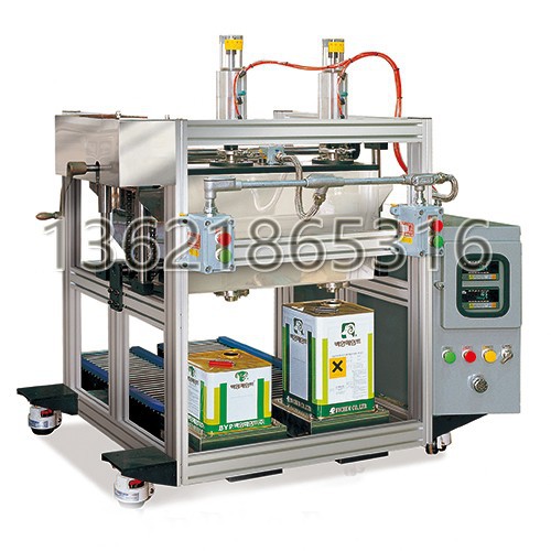 - 當(dāng)操作者坐著將空罐放在稱重臺(tái)上時(shí),使用服務(wù)料斗的原料完成定量灌裝。
