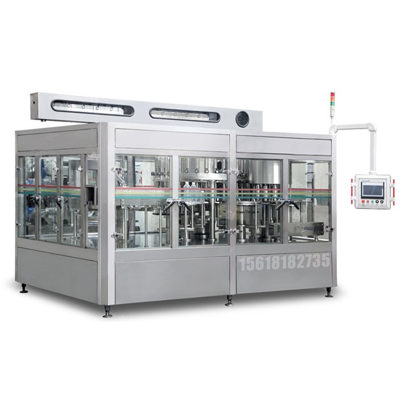 乳制品灌裝機產品簡介概述:三合一乳飲品生產線集洗瓶-灌裝-理蓋上蓋-封口為一體的自動灌裝機組。乳飲品灌裝機適用于PP或PET瓶乳品果汁以及米露等產品的灌裝封口。洗瓶部分:采用翻轉式高壓無菌水沖洗。灌裝部分:乳飲品灌裝機采用負壓和正壓兩種方式進行精準灌裝。并在灌裝后對瓶口進行沖洗。清洗采用CIP和物料雙通道式清洗。上蓋部分:乳飲品灌裝設備采用提升式理蓋上蓋,并配有洗蓋通道。封口部分:乳飲品灌裝設備采