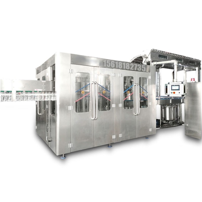 PET瓶裝水生產線產品簡介PET瓶裝水生產線主要適用于飲用水的灌裝作業,常用于PET瓶、聚酯瓶、塑料瓶等純凈水 礦泉水,山泉水,蘇打水等的生產,可實現330-1500ml在一臺機器上兼容,產量2000-36000瓶/時按需采購。控制系統 集沖洗,灌裝,封蓋為一體,整機PLC自動化控制,性能穩定,安全可靠,人機一體界面,操作簡便智能,更換不同容量簡單快捷。進瓶 瓶子傳輸全部采用卡瓶頸技術,變換瓶形無