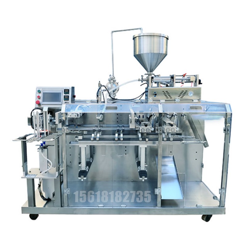 3、水平給袋包裝機可根據充填物料的性質選配沖孔裝置,異型切裝置等等;