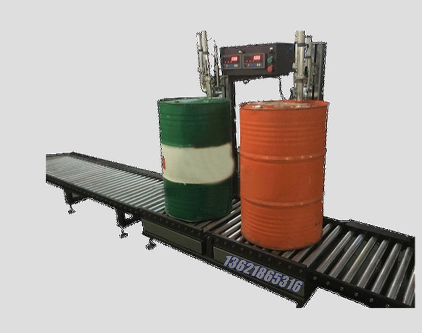 應用案例YCS-200型高灌稱重式灌裝機,原理是由稱重傳感器平臺在微電腦程序的控制下設定計量是高精度,高技術產品,是集機、電、儀一體化的新型機種,它改變了傳統流量計式灌裝機定量精度及無法對較粘液體的計量缺陷,是文明生產和國家明令規定淘汰杠桿秤后,融稱重與灌裝一體化的理想設備。灌裝時先去除皮重,操作者只需要將容器放入平臺,桶口對準灌裝咀,此時程序啟動,打開灌裝閥進料, 物料在注入容器時先大量快速灌裝后再慢速小劑量修正計量,當達到設定量是自動停止灌裝,灌裝咀上升,完成灌裝過程。稱重灌裝機適用于各種有粘、無粘、有一定腐蝕性和無腐蝕性、無泡沫的液體稱重定量灌裝。功能特點1.灌裝方式:液面上灌裝(頂部灌裝)。2.控制方式:灌裝方式由人工設定,微動開關控制。3.輸送方式:輥道無動力輸送帶。4.具備數字式顯示灌裝量的功能,可完成多種灌裝量的設置。5.具備自動去皮,按凈重灌裝的功能。6.具備真空回抽防滴漏的功能。7.具備控制系統手動和自動(微動開關控制)功能。8.具備快慢雙速控制功能,防止飛濺。9.具備防止誤操作和斷電保護等緊急處理功能10.液體流經管道為不銹鋼304材質11.密封件采用硅橡膠(耐磨損、耐高溫、耐酸堿、耐腐蝕),氟橡膠(耐磨損、耐強酸堿、強腐蝕).【根據實際物料屬性溫度匹配合適的密封件】型號YCS/200L(單頭)YCS-D/200L(雙頭)灌裝范圍20-250kg(300kg可選)20-250kg(300kg 可選)灌裝速度30-50桶/小時80-120桶/小時灌裝精度±0.1%(200KG作為參考值)進料壓力0.3~0.35MPa工作壓力0.4~0.6MPa耗氣量0.2m3/分鐘電源AC220V 50HZ稱重部分機器尺寸(mm)1200x870x1650(mm)1500x870x1650 (mm)重量Weight120 kg200 kg上海廣志自動化設備是專業生產200升灌裝機的廠家,歡迎廣大客戶前來咨詢,電話021-60518382 上海廣志自動化設備是專業生產200升灌裝機的廠家,歡迎廣大客戶前來咨詢,電話021-60518382 上海廣志自動化設備是專業生產200升灌裝機的廠家,歡迎廣大客戶前來咨詢,電話021-60518382