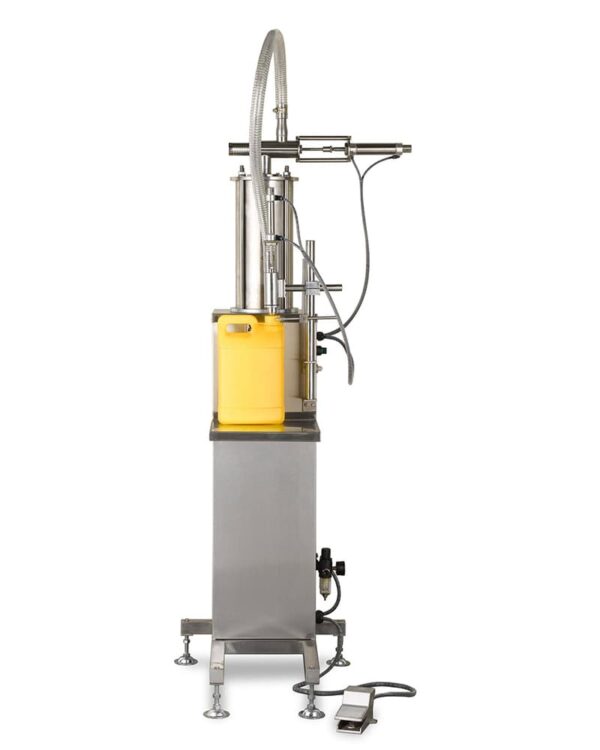 Adjustable Piston Cylinders: 5 swappable cylinders cover 50ml–5L fills (±0.5% repeatability).