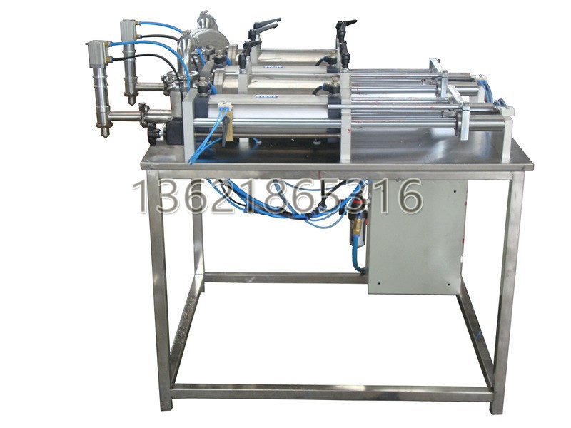 充填機是本公司開發(fā)的全氣動半自動活塞式灌裝系列的一種低濃度流體進行灌裝的灌裝機,它是通過氣缸帶動一個活塞及轉(zhuǎn)閥的三通原理來抽