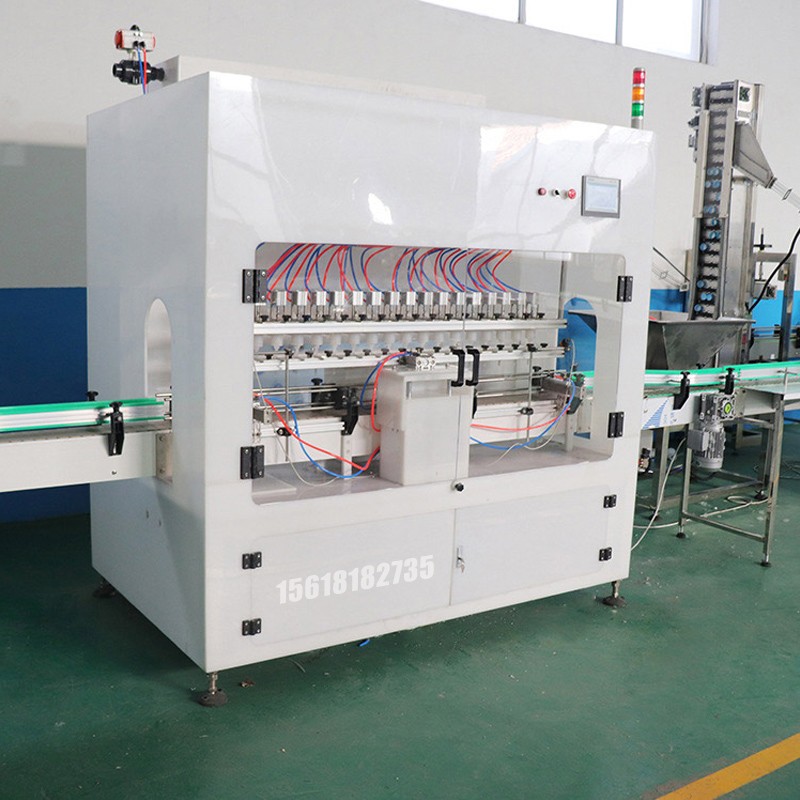次氯酸洗手液酒精消毒水灌裝機產品概述 適用液體:消毒液 消毒水 酒精等 性能特點: 1.該機為全自動智能化直線式灌裝機,采用微電腦(PLC)編程控制,光電傳感,電動氣控。全彩色觸摸屏人機界面,全部灌裝過程通過設備上的觸摸屏即可完成對灌裝量、灌裝頭數的設定而自動灌裝,其過程基本實現一鍵式操作。 2.整機采用**PP制作,耐用。 3.采用自流式灌裝原理,防止液體外溢。防滴漏的灌裝頭,保證灌裝