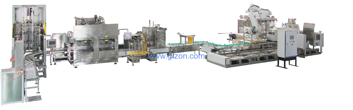 13. 自動堆垛,置入托盤。